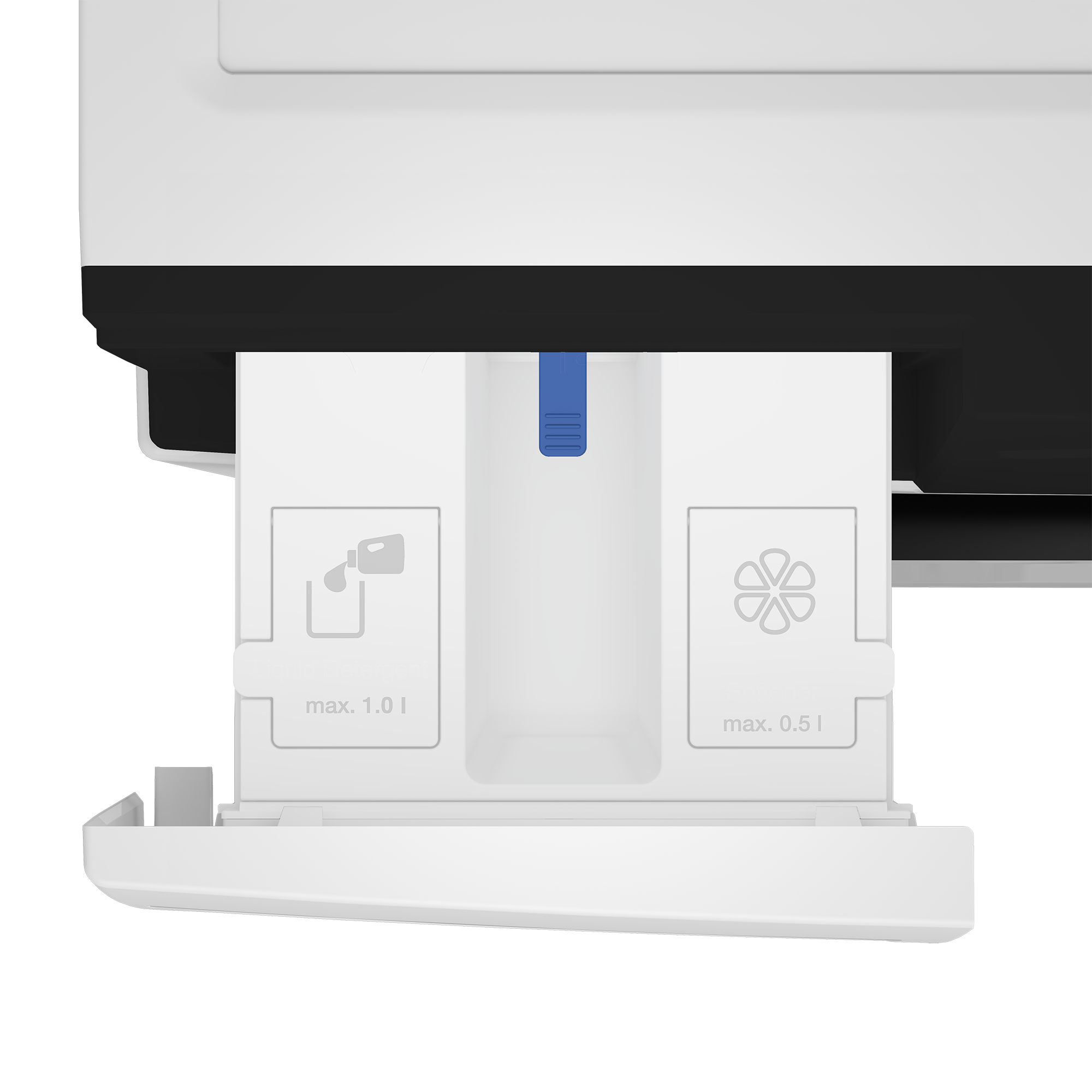 Autodose; doseert automatisch de juiste hoeveelheid vloeibaar wasmiddel